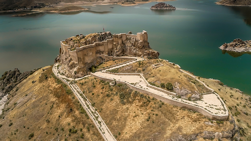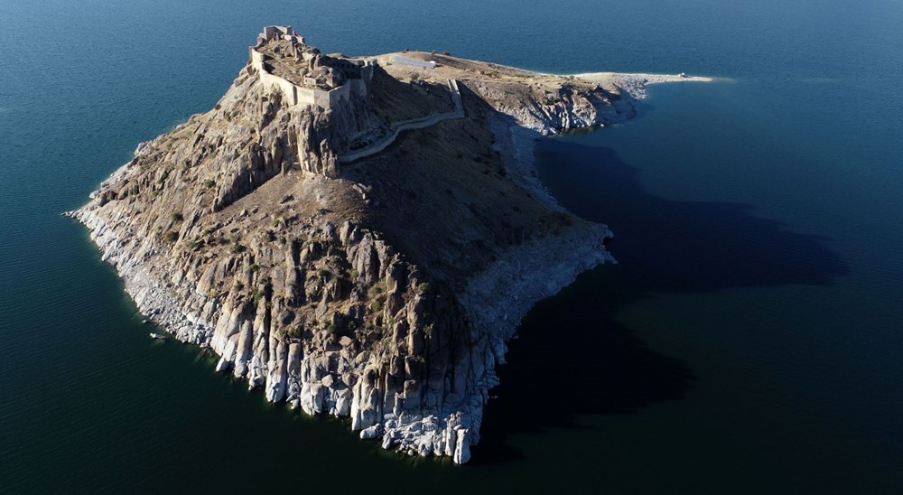 Mavi suların ortasında tarihi bir kale